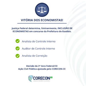 A Justiça Federal, por meio da 3ª Vara Federal do Ceará, determinou liminarmente a inclusão de profissionais graduados em Ciências Econômicas no concurso público da Prefeitura do Eusébio (Edital nº 002/2025), para os cargos de: