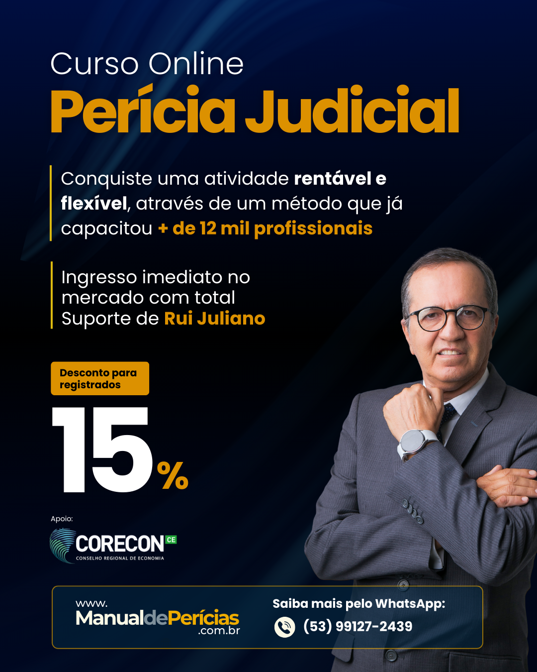 Para que você esteja preparado para assumir esse papel com segurança e respaldo, o Manual de Perícias disponibiliza condições especiais para o Curso Perícia Judicial Online, ministrado pelo professor Rui Juliano, referência nacional na área.