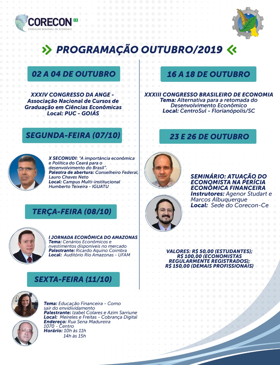 SEMINÁRIO: ATUAÇÃO DO ECONOMISTA NA PERÍCIA ECONÔMICA FINANCEIRA O seminário será ministrado pelos peritos Agenor Studart e Marcos Matos Brito,…