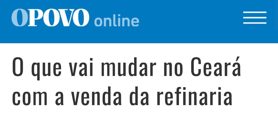 Ricardo Coimbra em “O que vai mudar no Ceará com a venda da refinaria” com Bruna Damasceno para O Povo