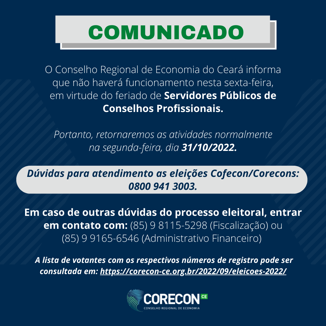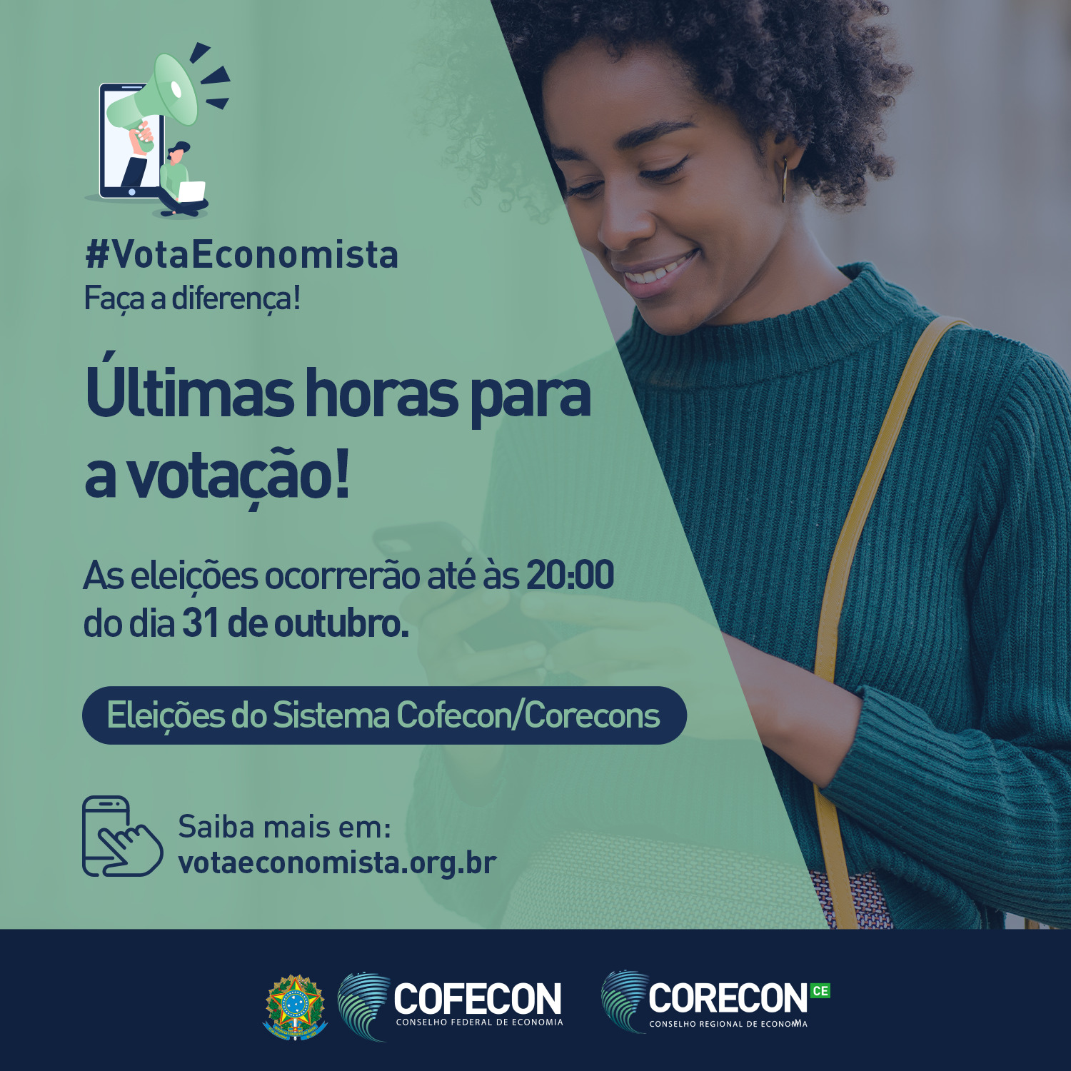 As eleições do Sistema Cofecon/Corecons é feita exclusivamente pela internet, por meio do site www.votaeconomista.org.br. Vote! Faça a diferença.