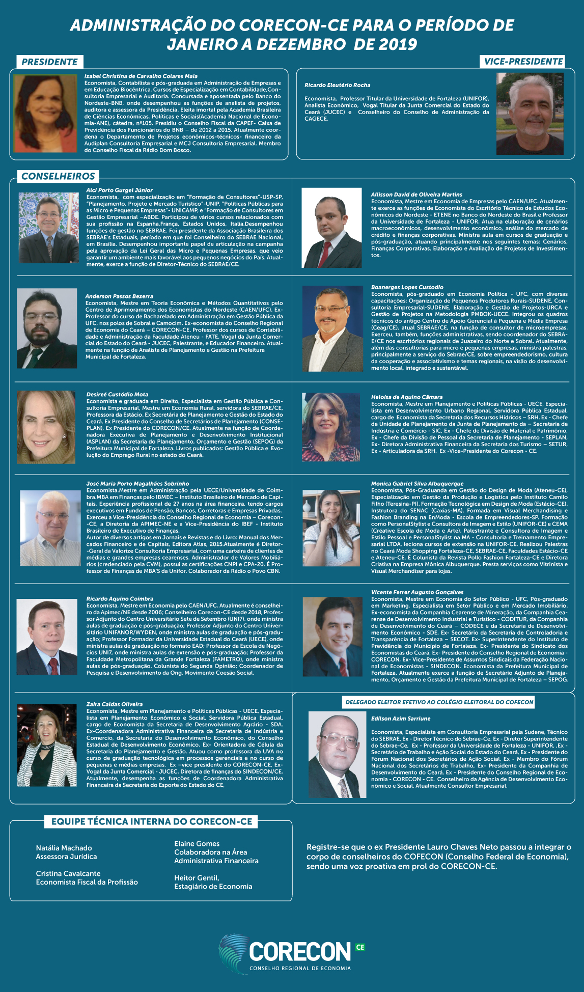 Isabel Colares e Ricardo Eleutério Rocha foram eleitos, respectivamente, presidente e vice do Conselho Regional de Economia do Ceará (Corecon-CE).…
