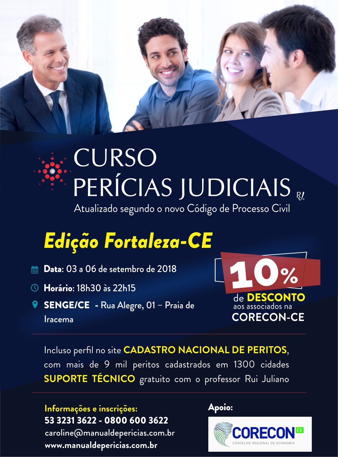 Participe do Curso Perícias Judiciais, a ser realizado em Fortaleza, no SENGE/CE, de 03 a 06 de setembro de 2018.…