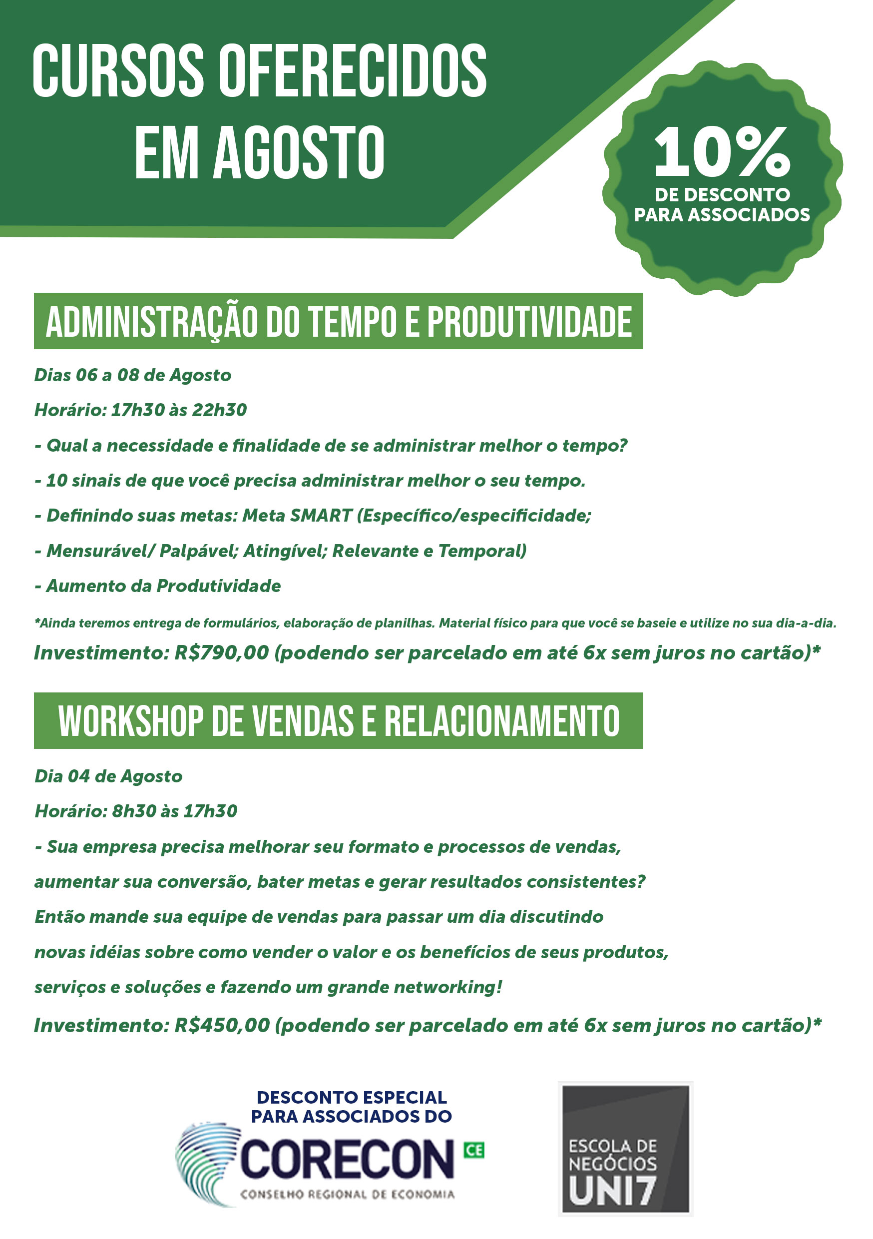 A Escola de Negócios da UNI7 está com inscrições abertas para os cursos oferecidos no mês de agosto! Os associados…