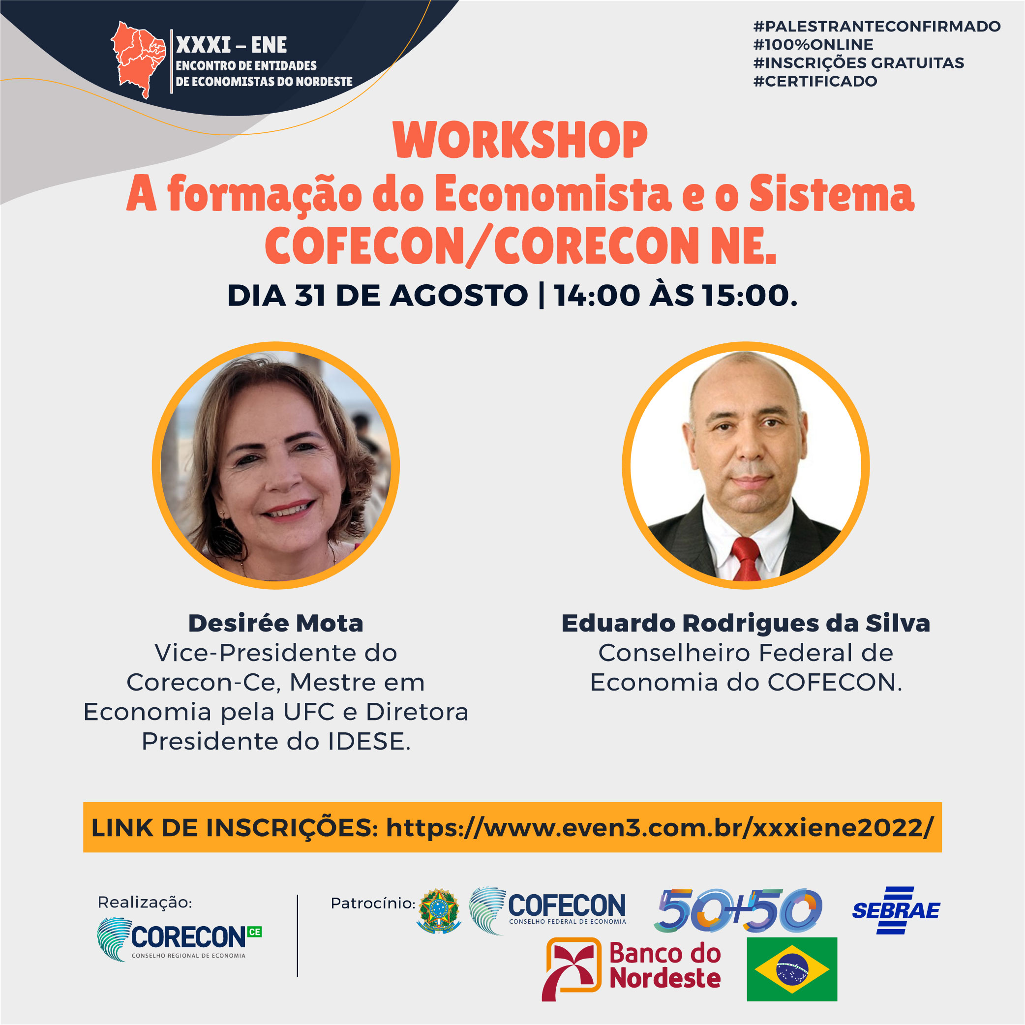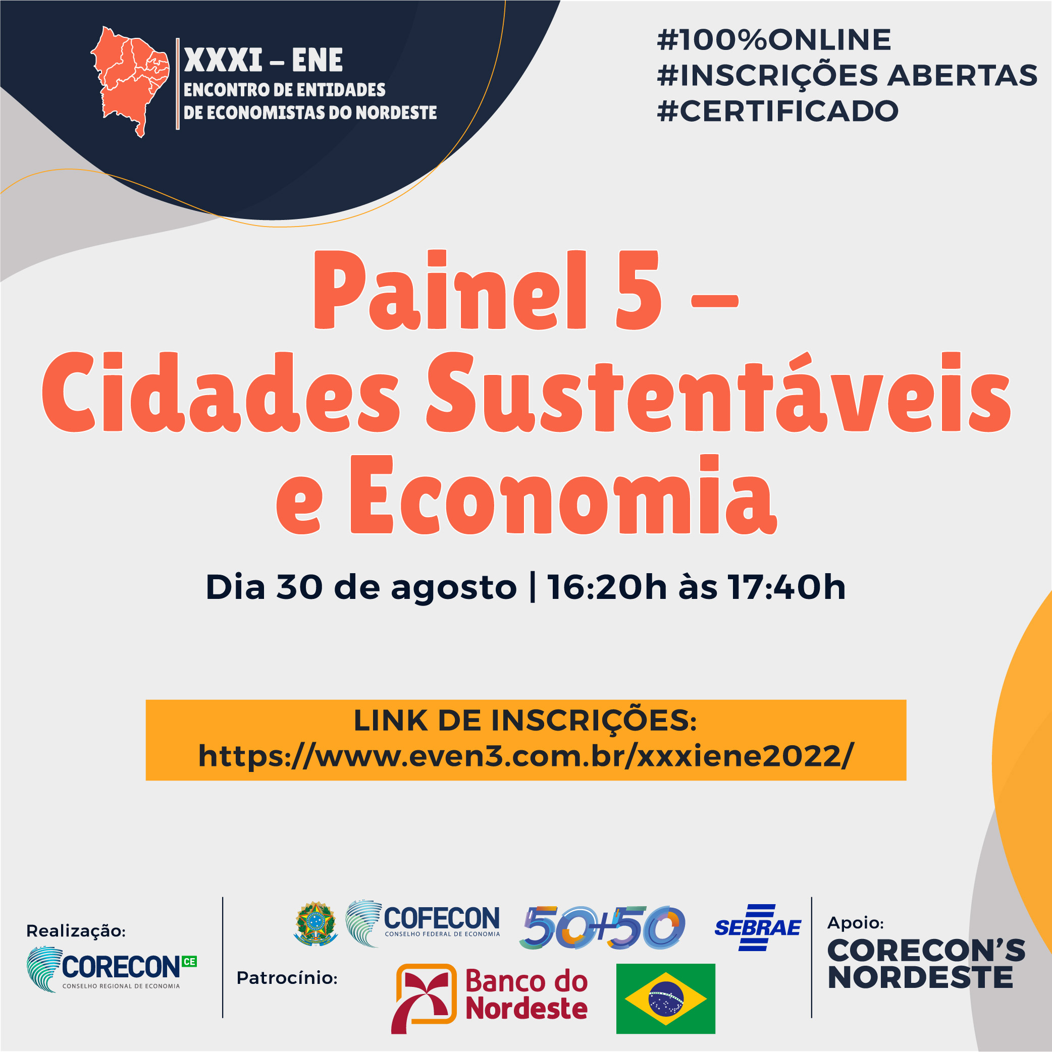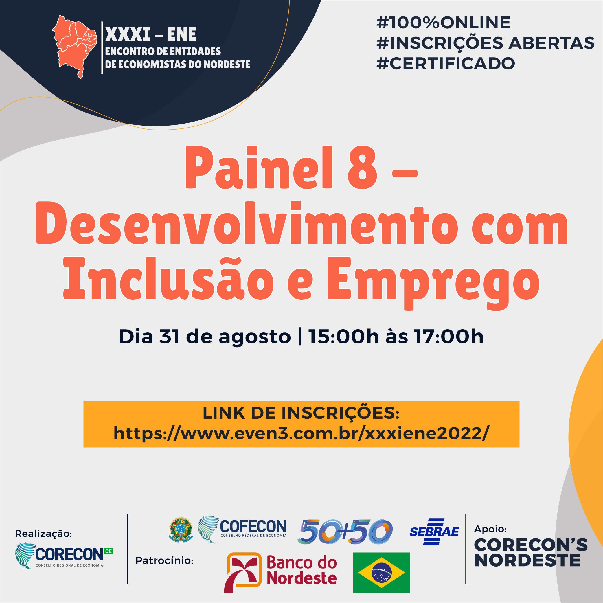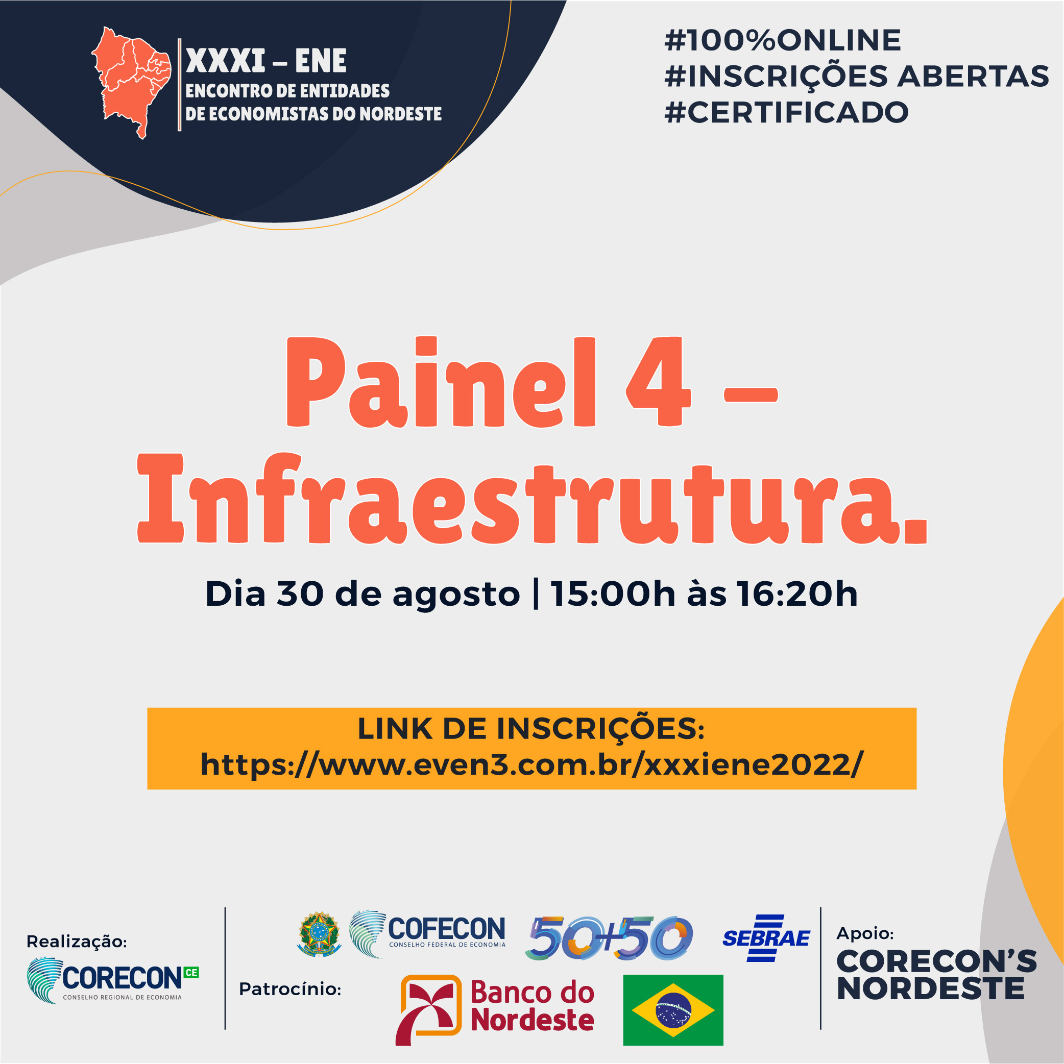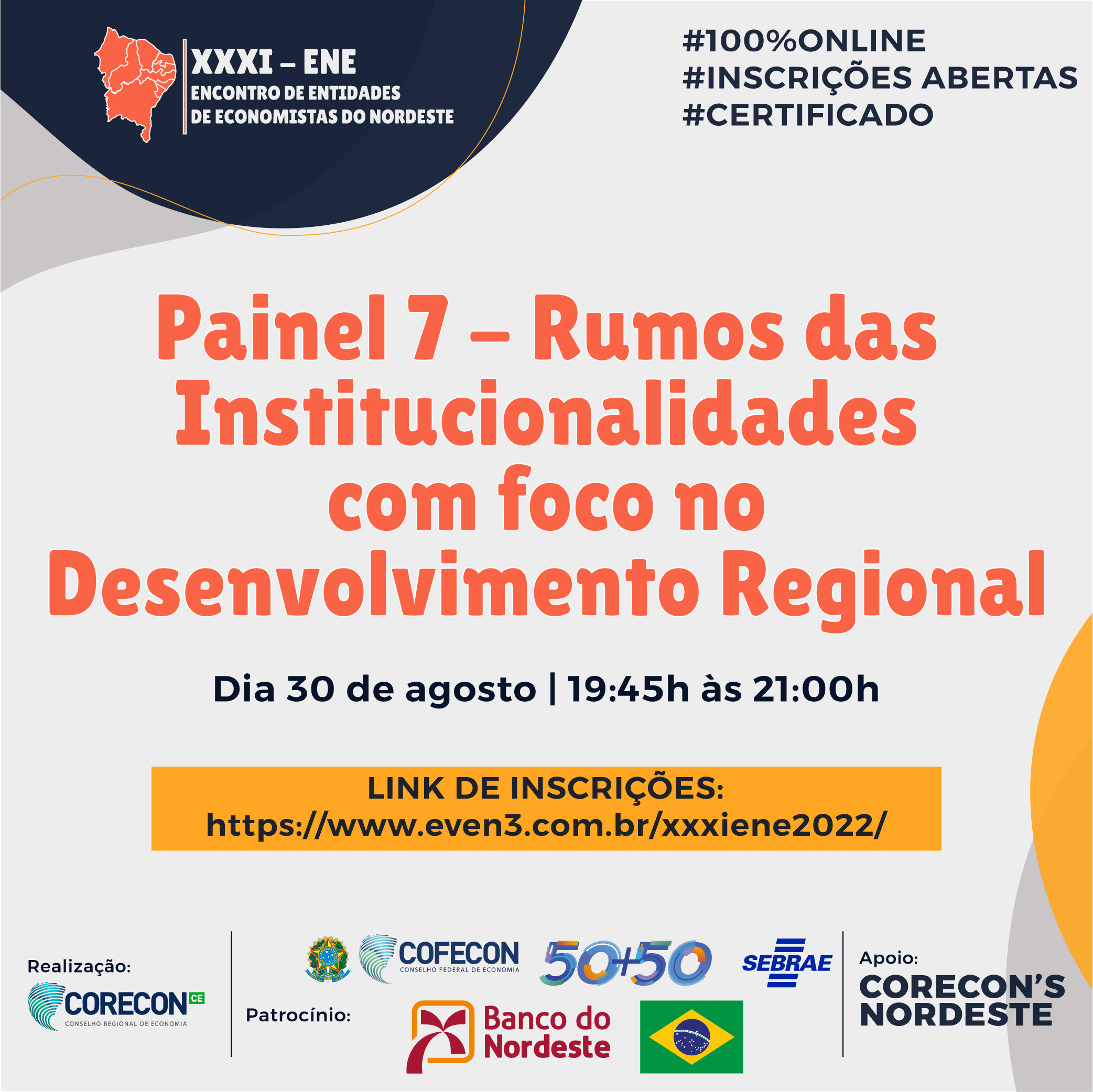 Para encerrar o segundo dia do XXXI ENE – Encontro de Entidades de Economistas do Nordeste, teremos o “PAINEL 7…