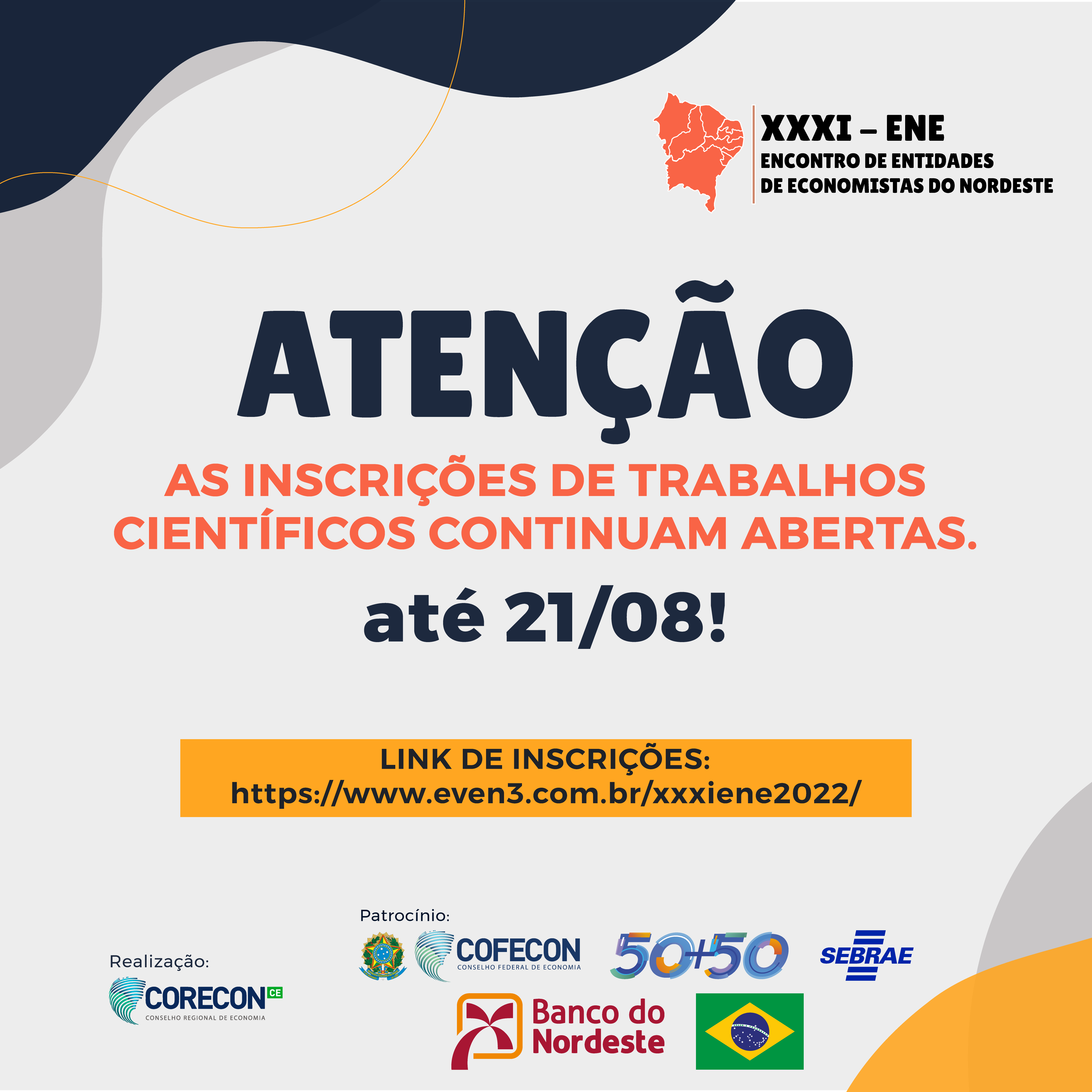 As inscrições para trabalhos científicos encerram hoje! O Prêmio de Artigos Científicos XXXI Encontro de Entidades de Economistas do Nordeste…