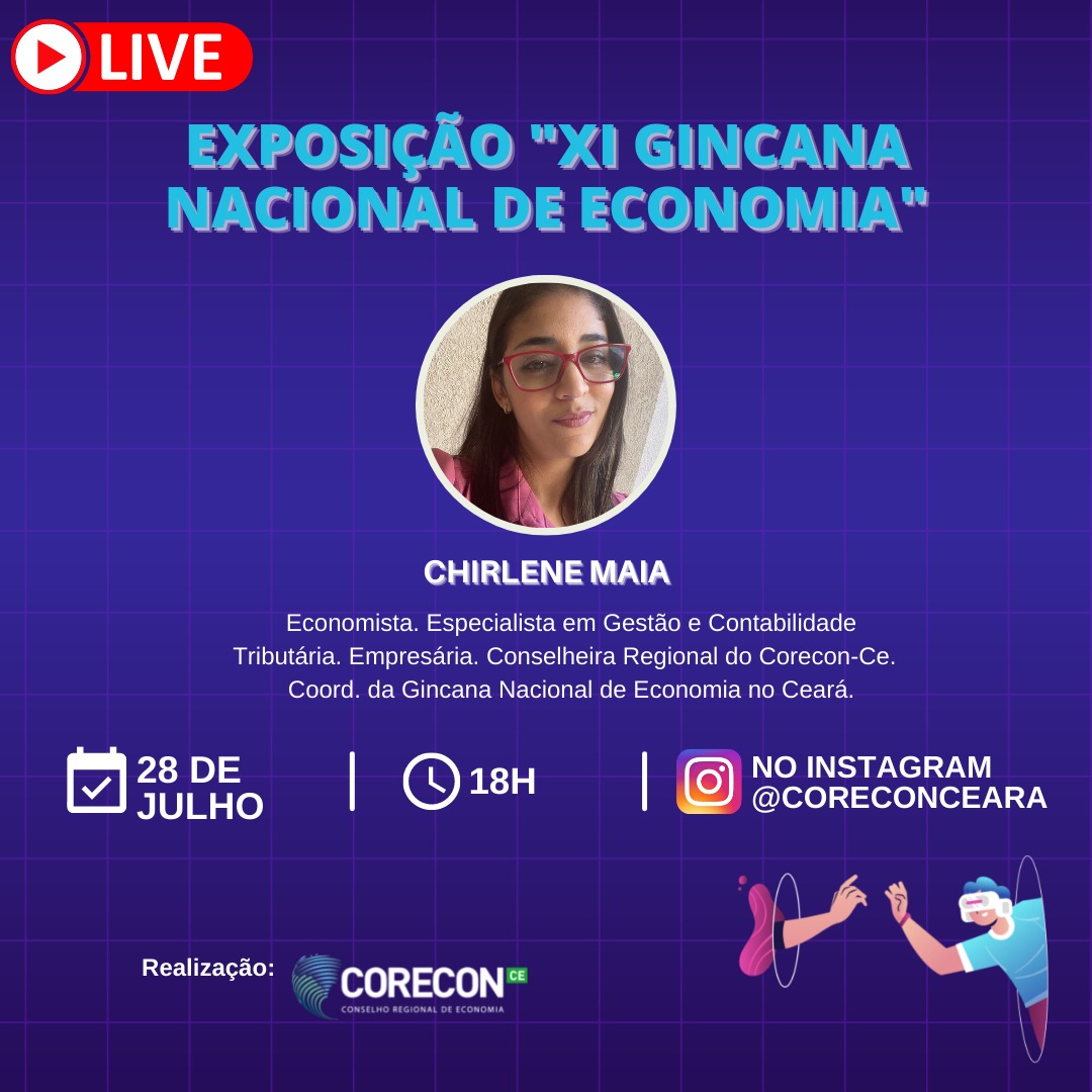 Amanhã, teremos uma live sobre a XI GINCANA NACIONAL DE ECONOMIA! Contaremos com a presença da Conselheira e Coordenadora da…