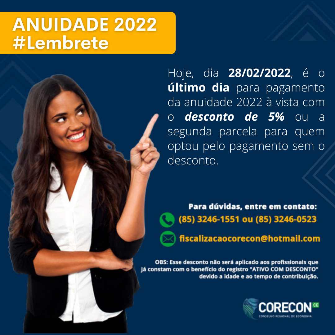 Aproveite o último dia para pagamento da anuidade 2022 com 5% de desconto na cota única! ✅Cota única com 5%…