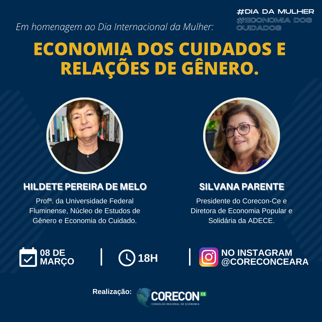 ➡️Em homenagem ao Dia Internacional da Mulher, o Corecon-Ce promove a live “Economia dos cuidados e relações de gênero”. 🌷A…