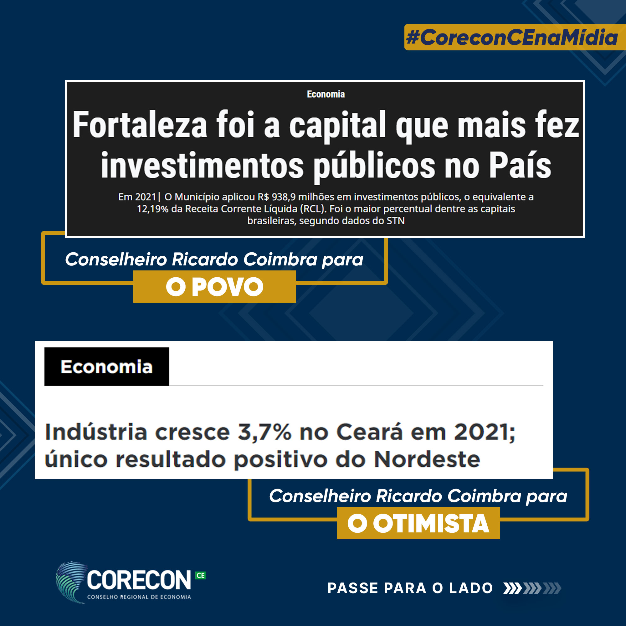 Confira as participações do Corecon-Ce na Mídia desta quinta-feira (10/02). O conselheiro Ricardo Coimbra comentou sobre o crescimento da indústria…