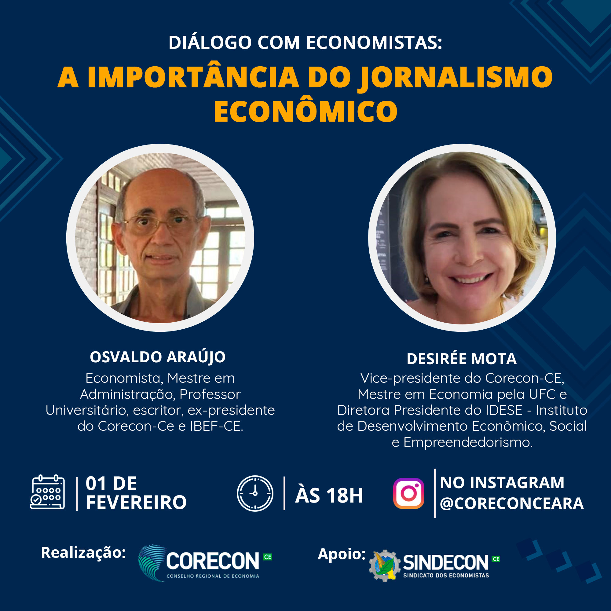 ive desta terça-feira (01/02) contará com a presença do economista, mestre em Administração e ex-presidente do Corecon-Ce, Osvaldo Araujo e…