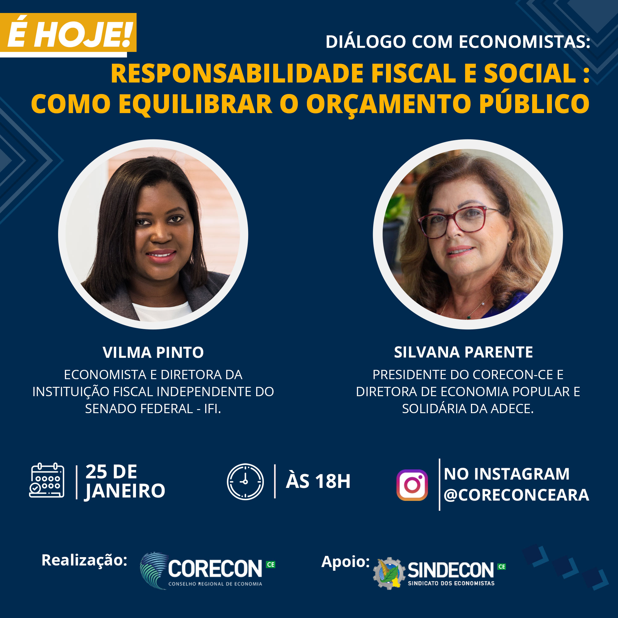 Na próxima terça-feira (25/01/2022) retornamos com a nossa programação de lives “Diálogo com Economistas” o tema abordado será “Responsabilidade Fiscal…