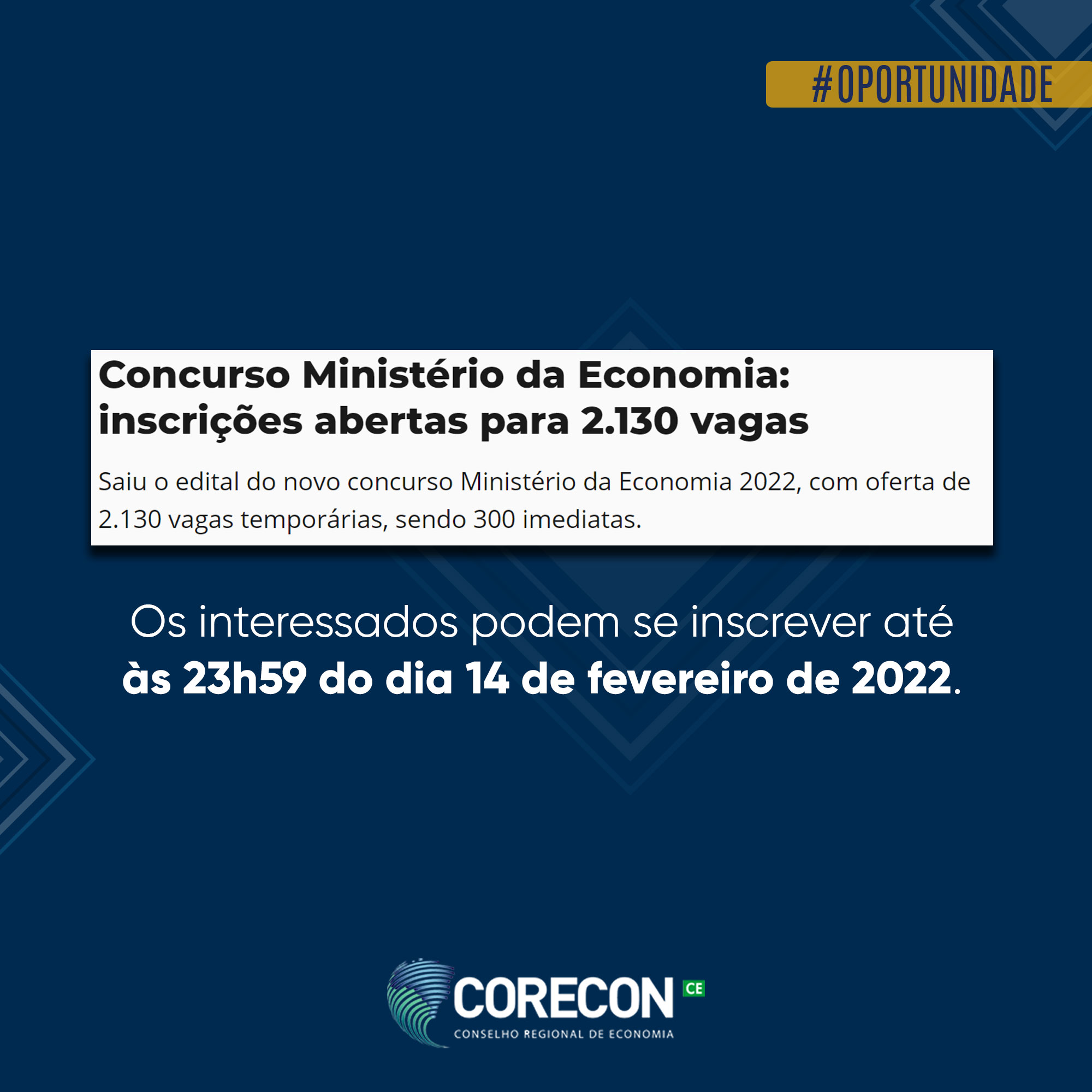 Ministério da Economia abre as inscrições para concurso com 2.130 vagas! Os interessados podem se inscrever até às 23:59 do…