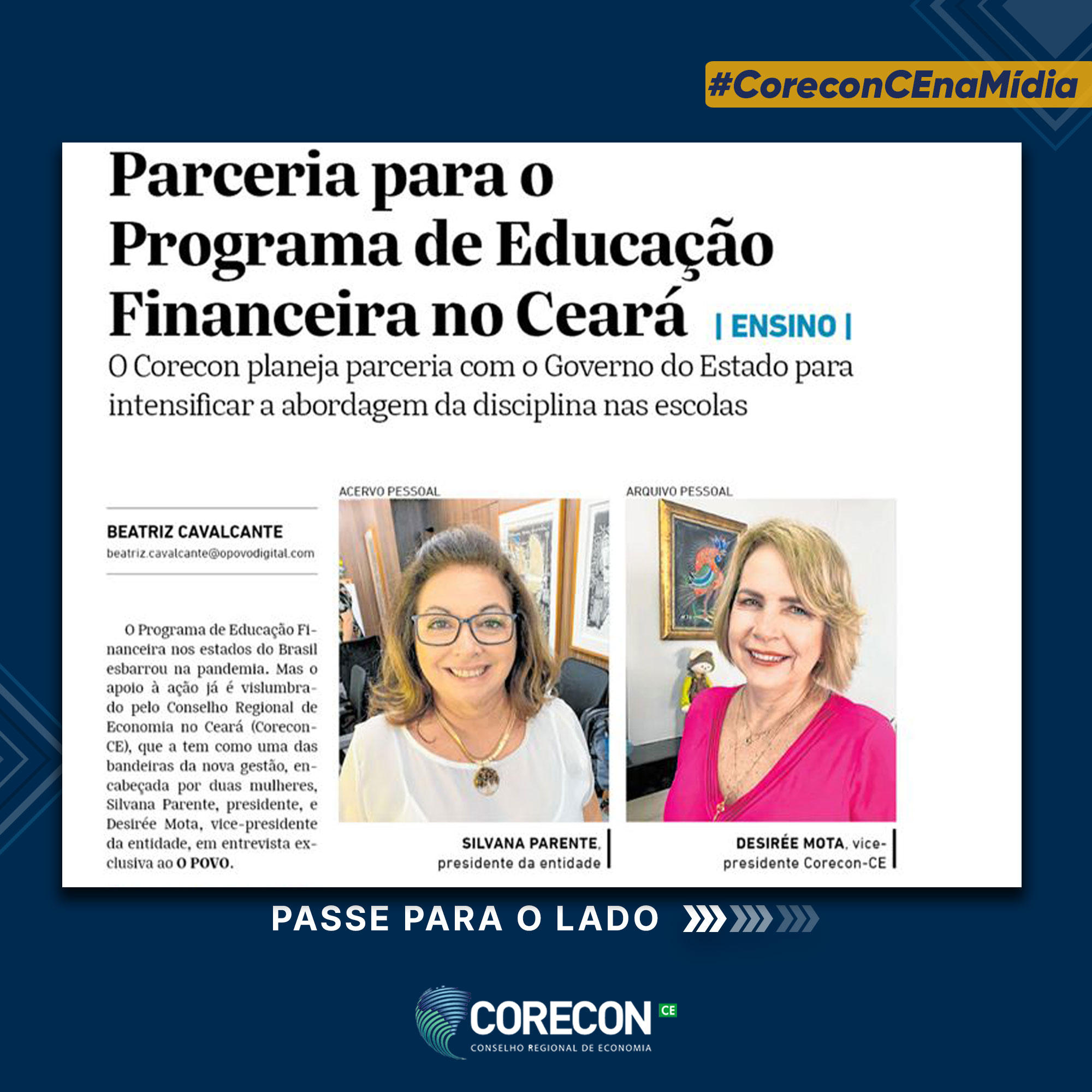 Confira a publicação no jornal @opovoonline com a presidente Silvana Parente e a Vice-Presidente do Corecon-Ce, Desirée Mota.
