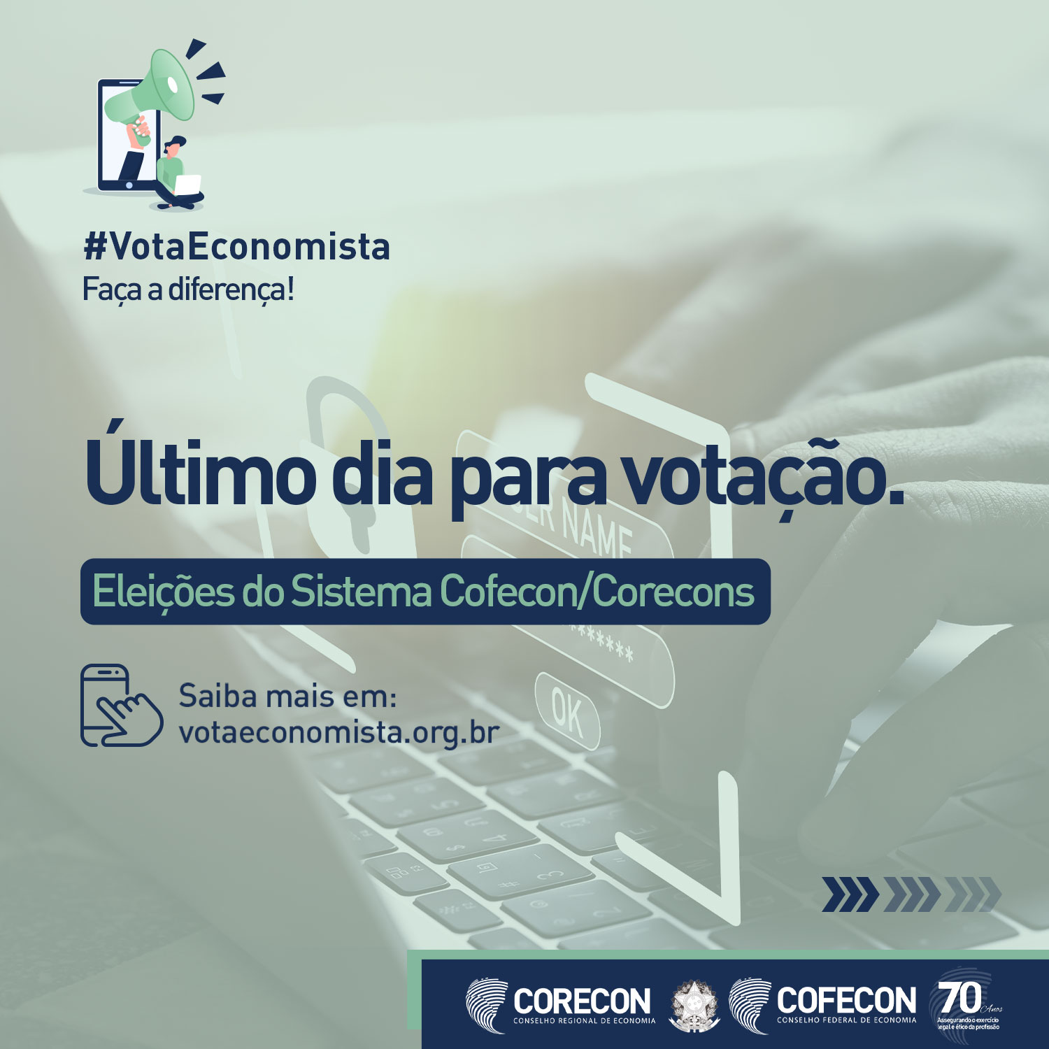Hoje é o ÚLTIMO dia do processo eleitoral do Sistema Cofecon/Corecons. A eleição, que é anual, acontece on-line. Com isso,…