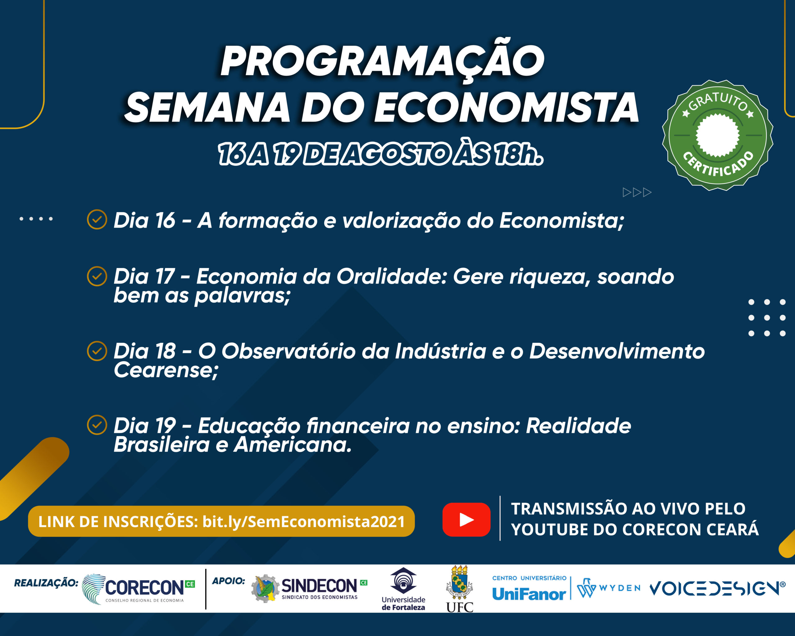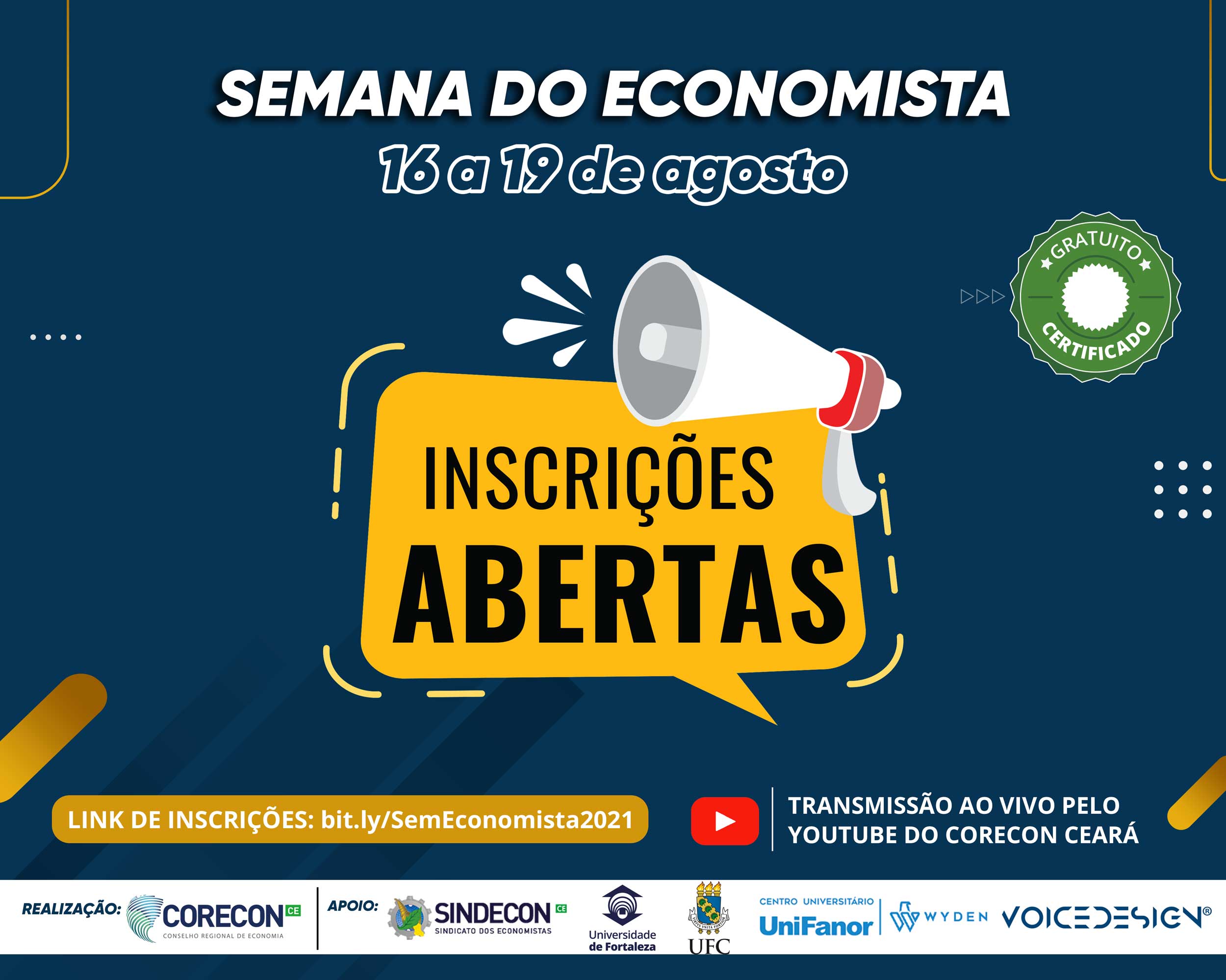 Estão abertas as inscrições para a SEMANA DO ECONOMISTA! Confira a programação:Dia 16 – A formação e valorização do Economita;…