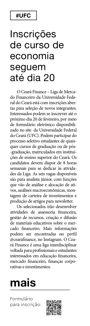 10% de descontos para economistas regularmente registrados no CORECON Ceará no MBA Finanças Blended