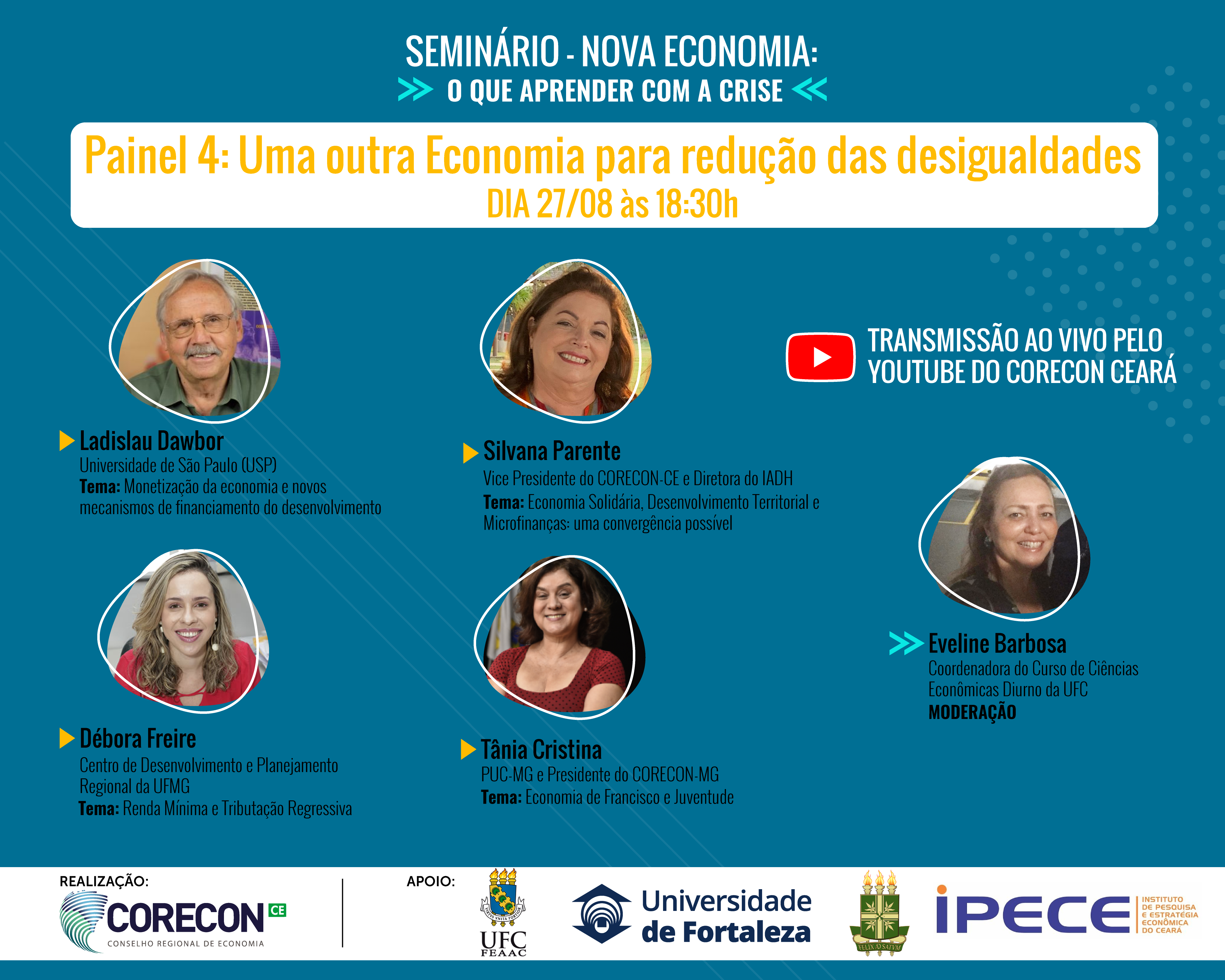 Hoje acontece o Painel 4 do Seminário Nova Economia com a temática “Uma outra Economia para redução das desigualdades” Amanhã…
