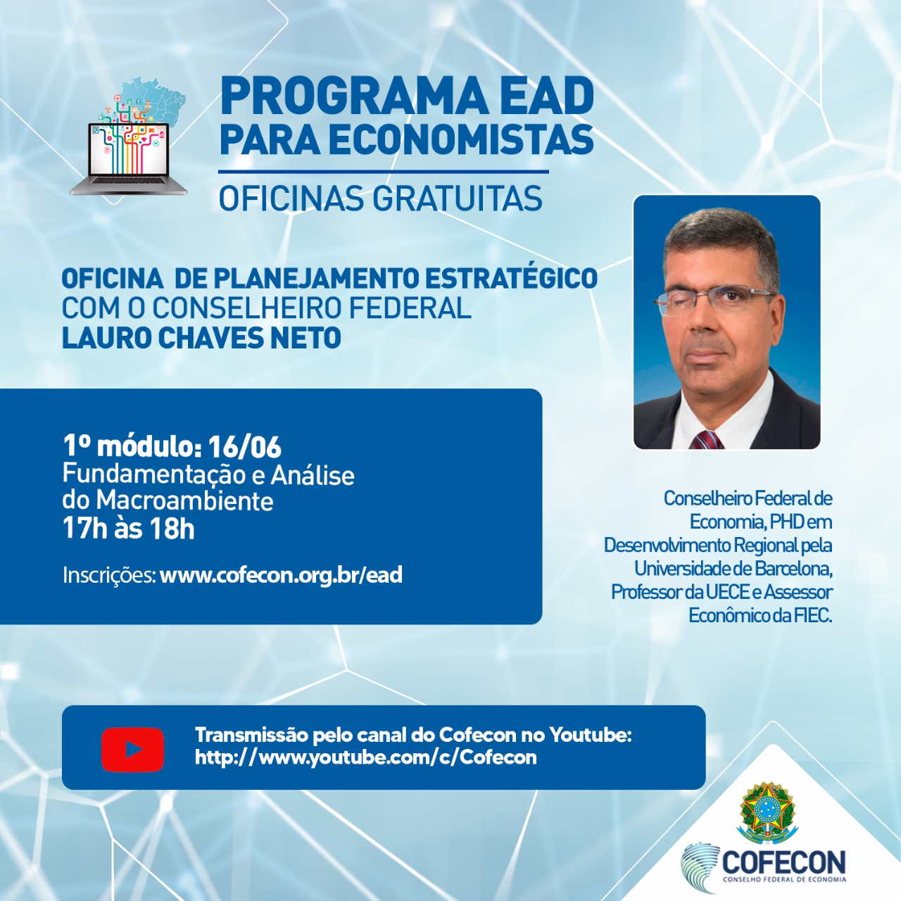 Oficina Planejamento Estratégico com Lauro Chaves Neto Transmissão pelo canal do Cofecon no Youtube